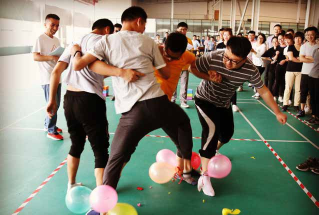 再就是說說趣味運動會項目吧,有“閃電脫兔、飛燕游龍、飛箸移珠、極地投籃、心心相印、芝麻開門、水漫金山、神筆馬良、歡樂爆破”等比賽活動,讓我記憶最深刻的是歡樂爆破---踩氣球活動,在這個活動中,大家你爭我搶,氣氛異?;钴S,一旁的觀眾激動地吶喊助威,同事們在爆破的聲音中,體會到了此次趣味運動會的樂趣。第一項“歡樂爆破”項目點燃了全場的氣氛,場上選手既要想方設(shè)法把對方的氣球踩破,又要千方百計地保護(hù)好綁在自己腿上的氣球,與此同時,為了不犯規(guī)又不能越線,還要提高和綁在一起同伴的默契度,綜合比較,很考驗一個人的綜合實力。無論是哪一個項目,從同事們臉上露出的笑容,就可以體會出那種快樂的釋放。