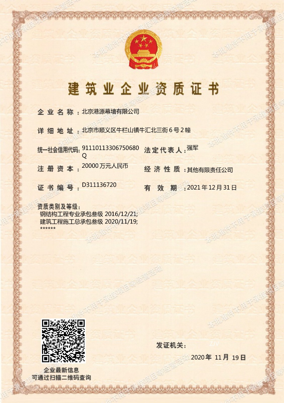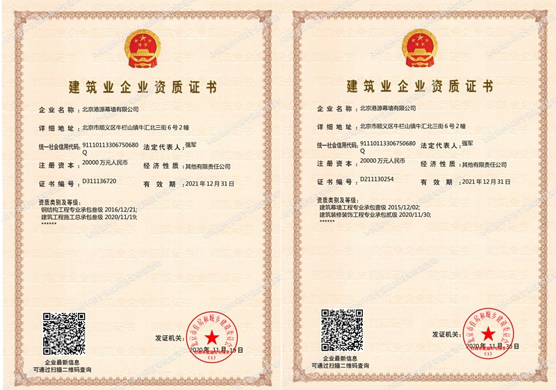 獲批“建筑工程施工總承包”、“建筑裝修裝飾工程專業(yè)承包”資質(zhì)